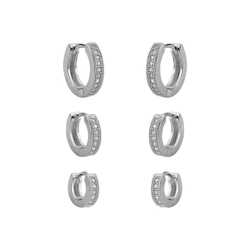 Trio Argolinha Cravejada l Cris - Prata Folheada